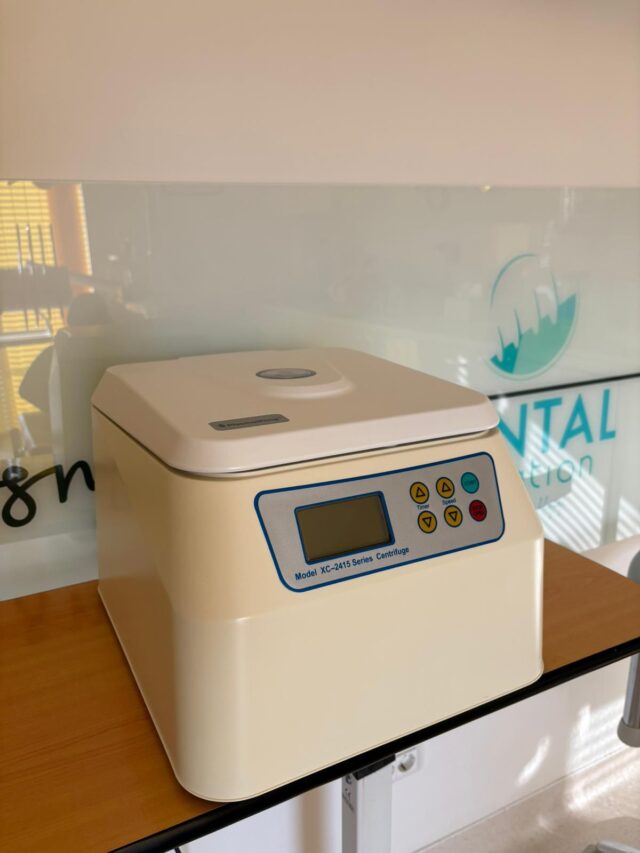 The centrifuge uses the resources of the patient’s body, having very good results in the case of association with the insertion of dental implants, in the treatment of periodontitis or in the case of stimulating tissue healing after a tooth extraction.